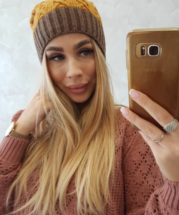 Czapka z polarem Bibiana K264 mocca+musztardowy