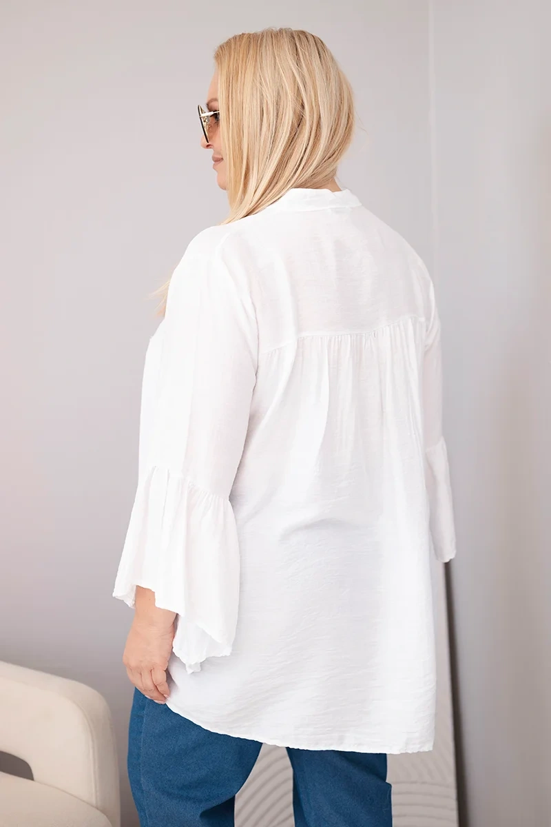 | Fason | Luźny, z falbanami na rękawach |