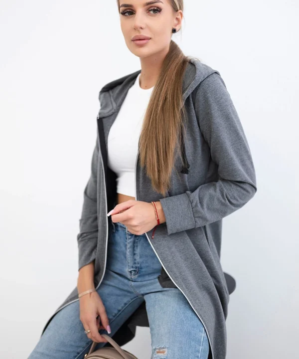 Odkryj naszą wyjątkową ocieplaną bluzę z dłuższym tyłem, która łączy w sobie komfort, styl i funkcjonalność. Ta rozpinana bluza z kapturem to idealny wybór na chłodniejsze dni, zapewniając ciepło i wygodę, której potrzebujesz. Wykonana z wysokiej jakości ocieplanego materiału, bluza doskonale sprawdzi się zarówno podczas codziennych spacerów, jak i w trakcie aktywności na świeżym powietrzu.