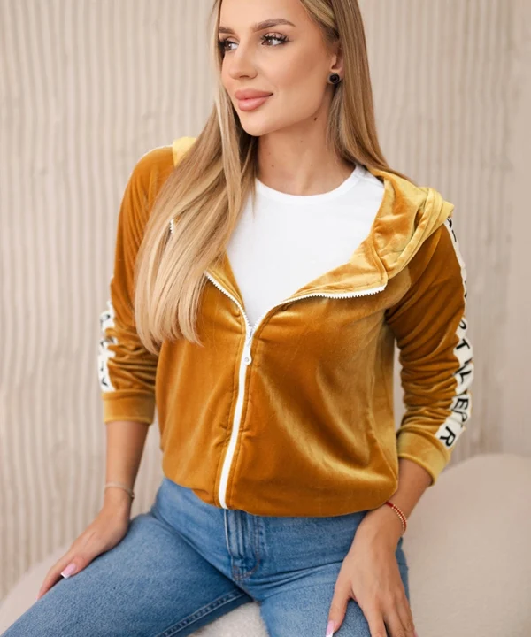 Bluza welurowa z kapturem musztardowa