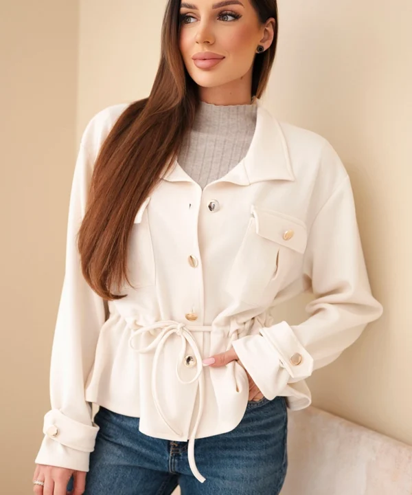 Bluza damska rozpinana masełkowa z troczkiem i kieszeniami fango