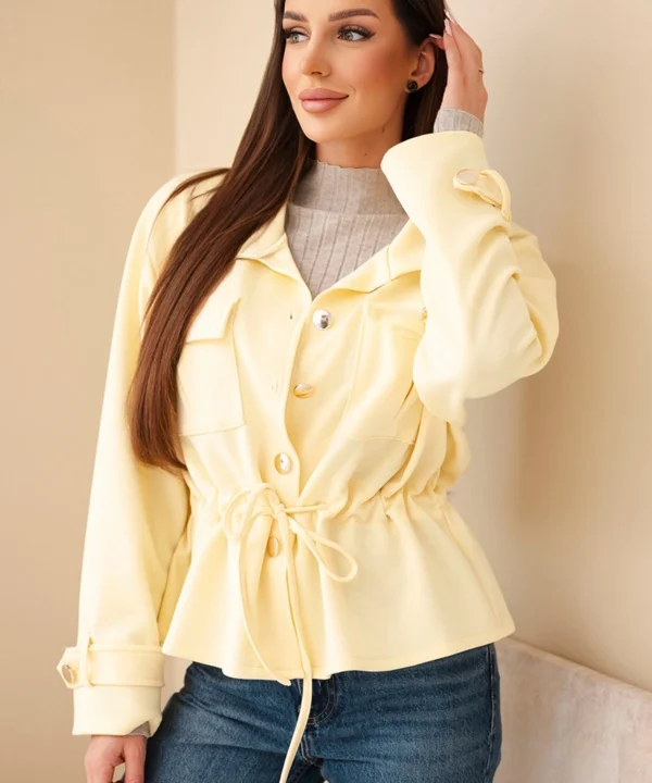 Bluza damska rozpinana masełkowa z troczkiem i kieszeniami żółta