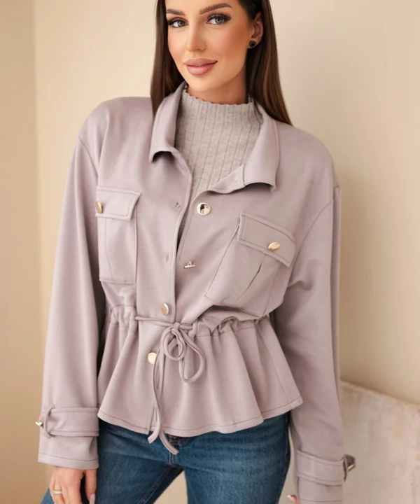 Bluza damska rozpinana masełkowa z troczkiem i kieszeniami fango