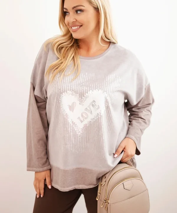 Bluza damska Plus Size bawełniana z nadrukiem serca i troczkami fango