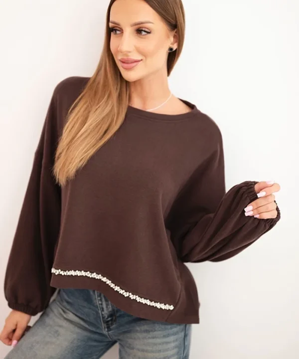 Bluza damska z ozdobnym wykończeniem na dole brązowa