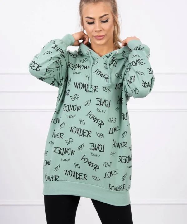 Bluza z napisami ciemno miętowa