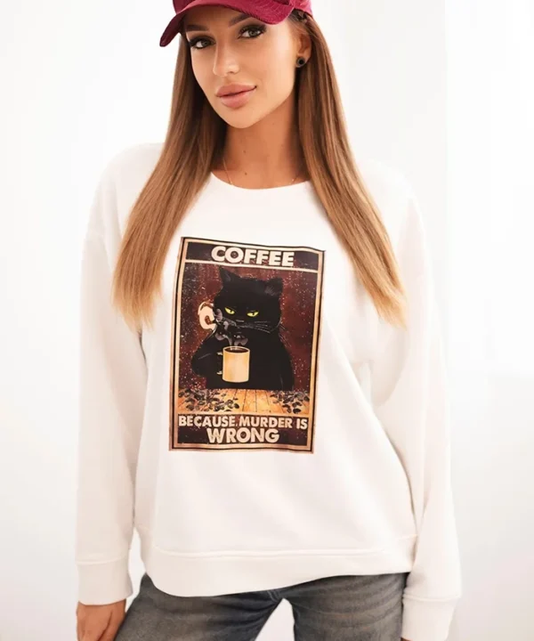 Bluza damska bawełniana z nadrukiem kota i napisem ecru