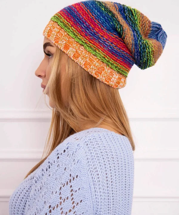 Czapka z polarem Krystyna K207 chabrowy+pomarańczowy