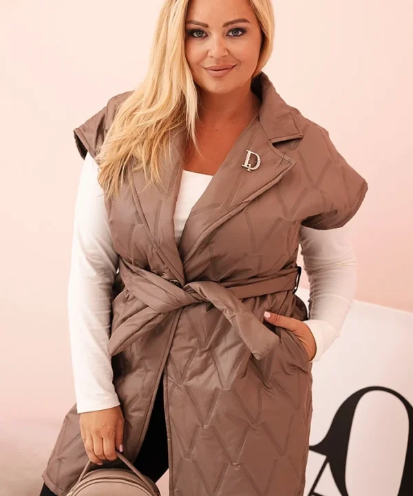 Kamizelka damska Plus Size pikowana z paskiem i kołnierzem fango