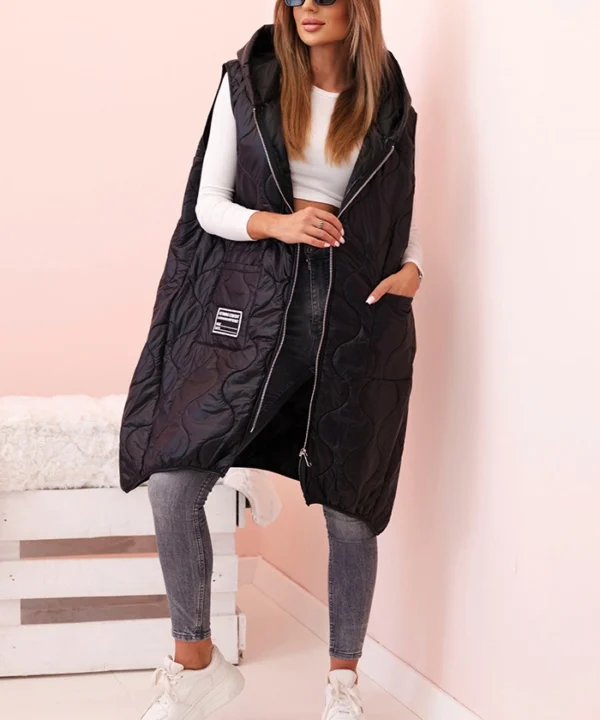 Kamizelka damska pikowana Plus Size z kapturem zapinana na zamek czarna