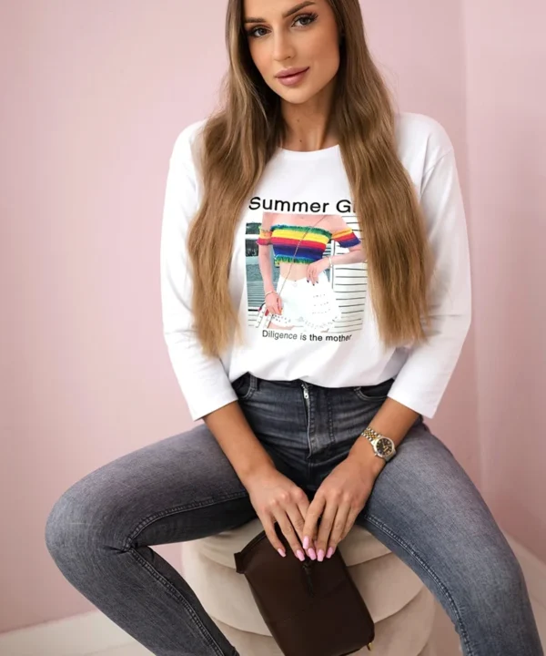 Bluzka z nadrukiem Summer Girl biała