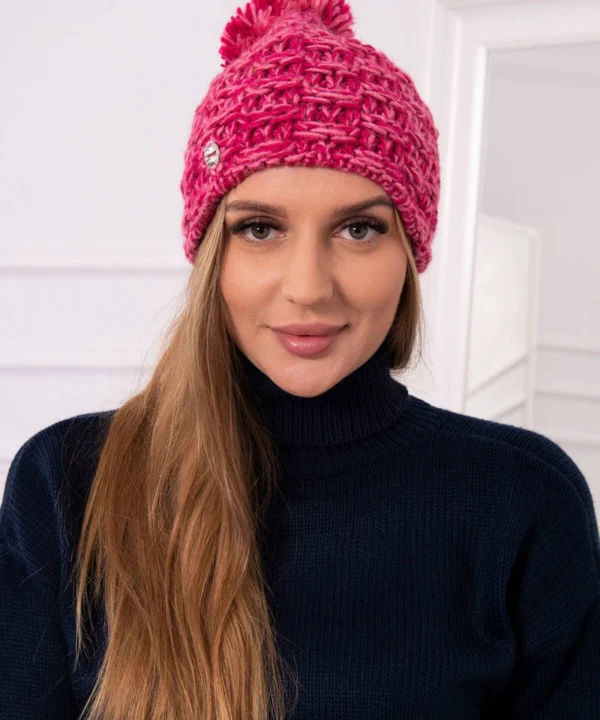 Czapka z polarem Fiona K275 fuksja+jasny pudrowy róż