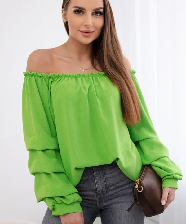 Bluzka hiszpanka z ozdobnym rękawem jasno zielona