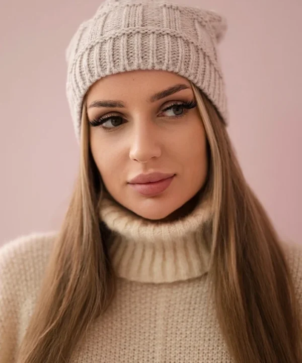 Czapka z polarem Marta K231 jasno beżowa
