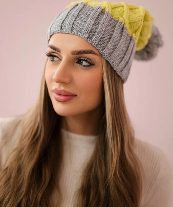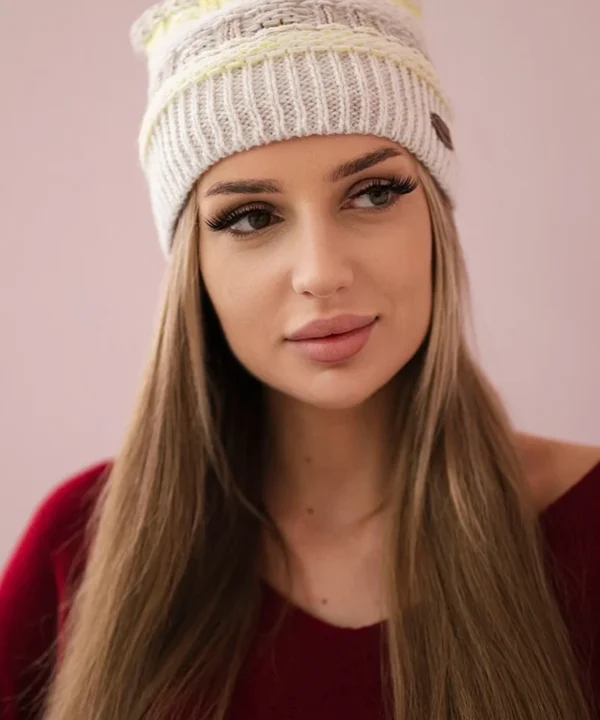 Czapka z polarem Patrycja K254 żółty+beżowy