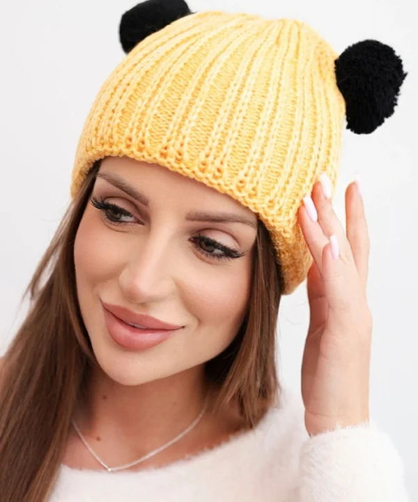 Czapka damska zimowa wełniana z pomponem K433 żółta