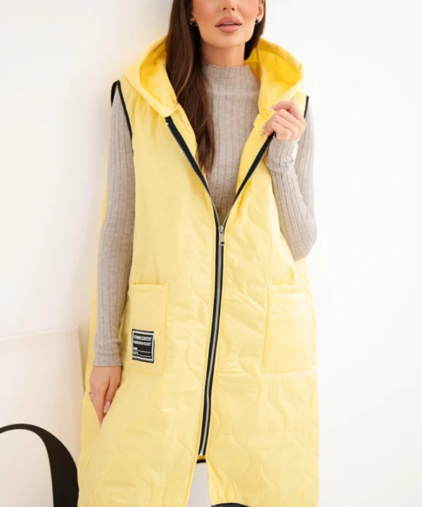 Kamizelka damska pikowana Plus Size z kapturem zapinana na zamek żółta