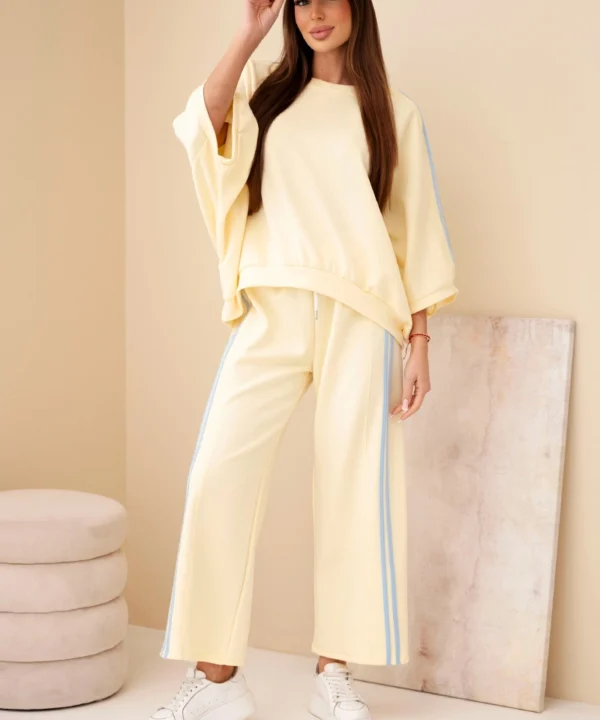 Komplet damski wiskozowy masełko z szeroką nogawką i luźną bluzą żółty