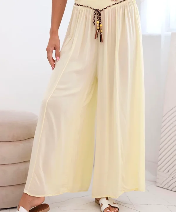 Spodnie damskie z wiskozy z szeroką nogawką żółte