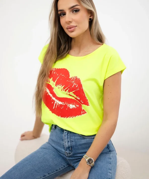 Bluzka z nadrukiem ust żółty neon+czerwony