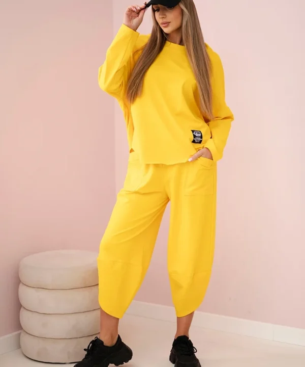 Komplet bawełniany bluza + spodnie ciemny żółty