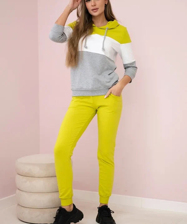 Komplet w kolorowe pasy kiwi+biały