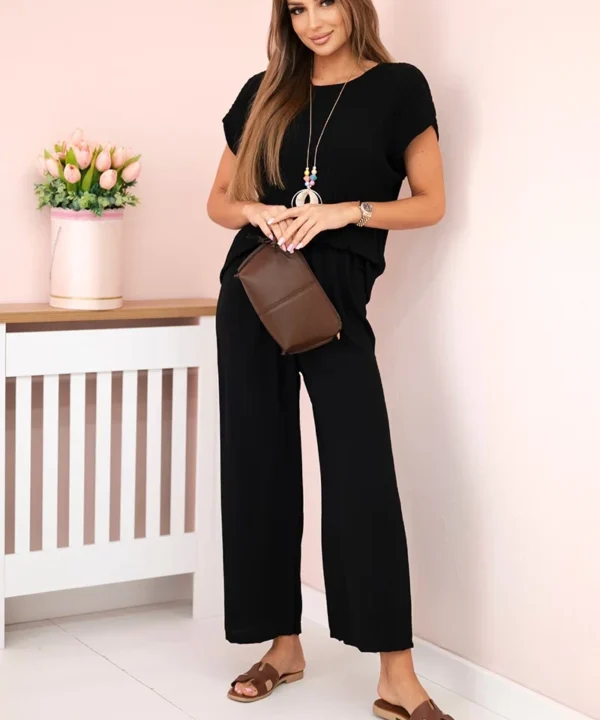 Komplet z wiskozy bluzka plisowana + spodnie czarny