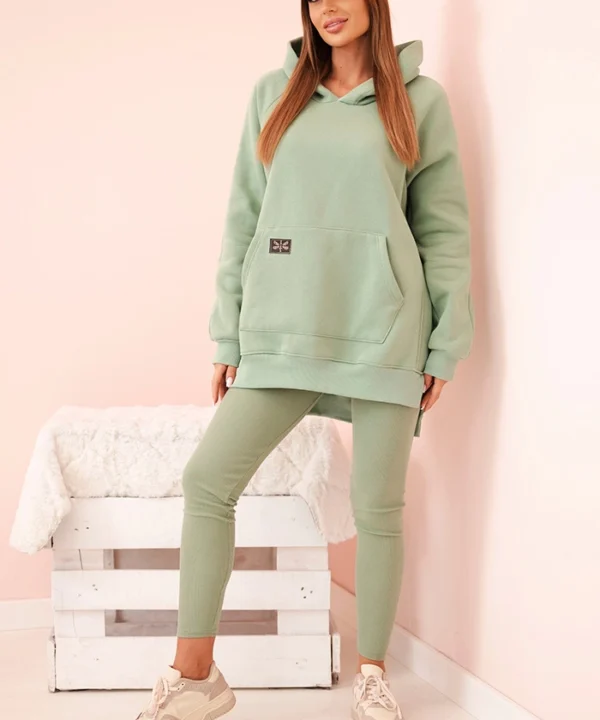 Komplet damski bawełniany bluza z kapturem i legginsy z wysokim stanem ciemny miętowy