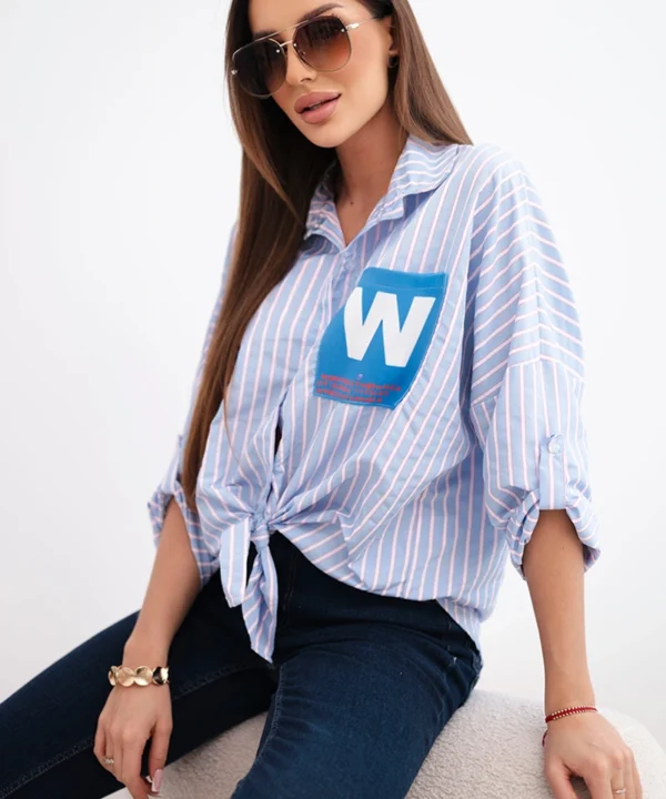 Koszula damska bawełniana w paski z wiązaniem niebieska