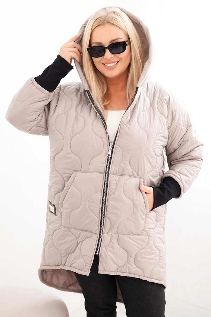 Kurtka damska Plus Size zimowa pikowana z kapturem camelowa