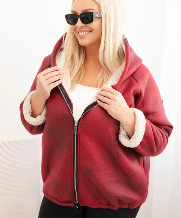 Kurtka damska Plus Size z kapturem i barankiem bordowa
