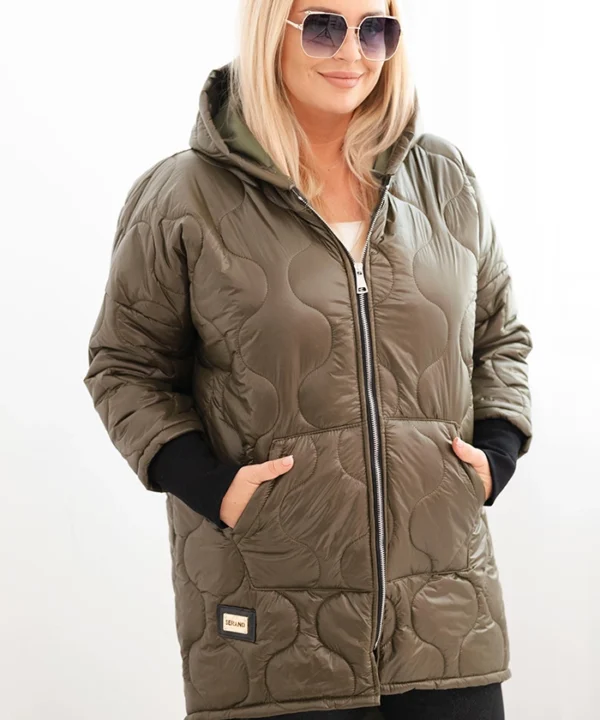 Kurtka damska Plus Size pikowana z kapturem khaki