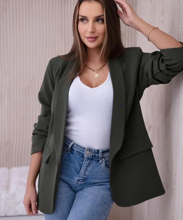 Odkryj wyjątkową elegancję z naszą marynarką bez zapięcia, która z pewnością stanie się kluczowym elementem Twojej garderoby. Jej klasyczny krój z klapami z przodu sprawia, że jest to idealna propozycja dla kobiet o różnych sylwetkach. Niezależnie od okazji, ta marynarka doda Twoim stylizacjom niepowtarzalnego uroku i szyku. Wykonana z wysokiej jakości materiału, zapewnia komfort noszenia przez cały dzień, a podszewka dodaje jej elegancji i klasy.