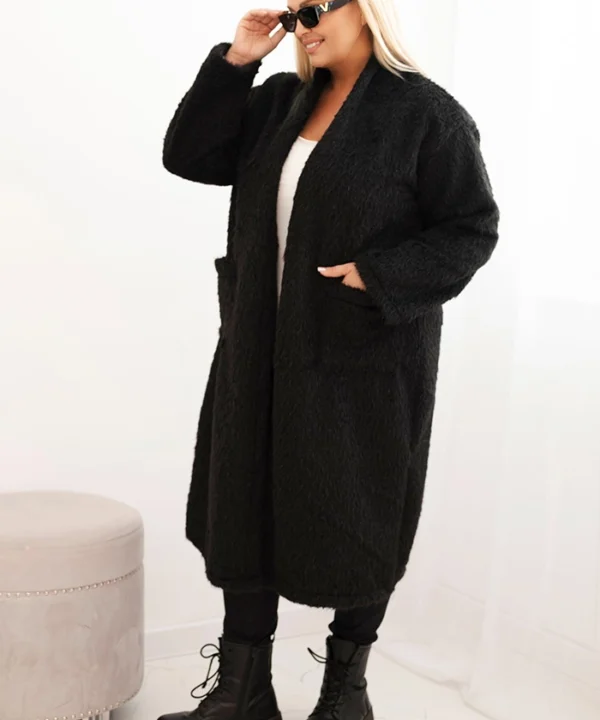 Płaszcz damski Plus Size z wiskozy bez zapięcia z kieszeniami czarny