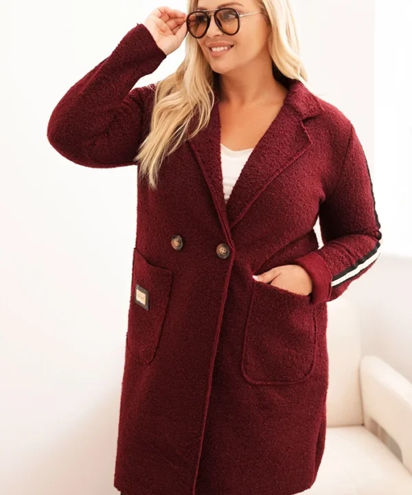 Płaszcz damski Plus Size ze sztucznego baranka z kieszeniami bordowy