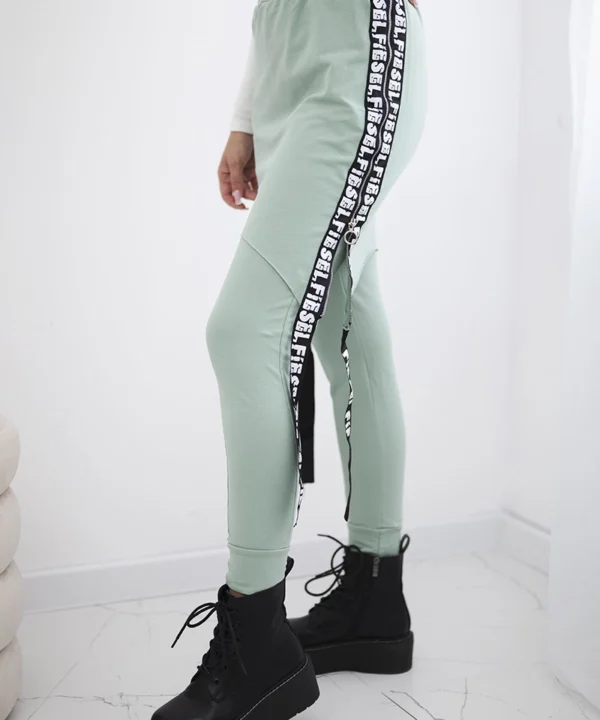 Spodnie/Kombinezon z napisem selfie ciemno miętowe