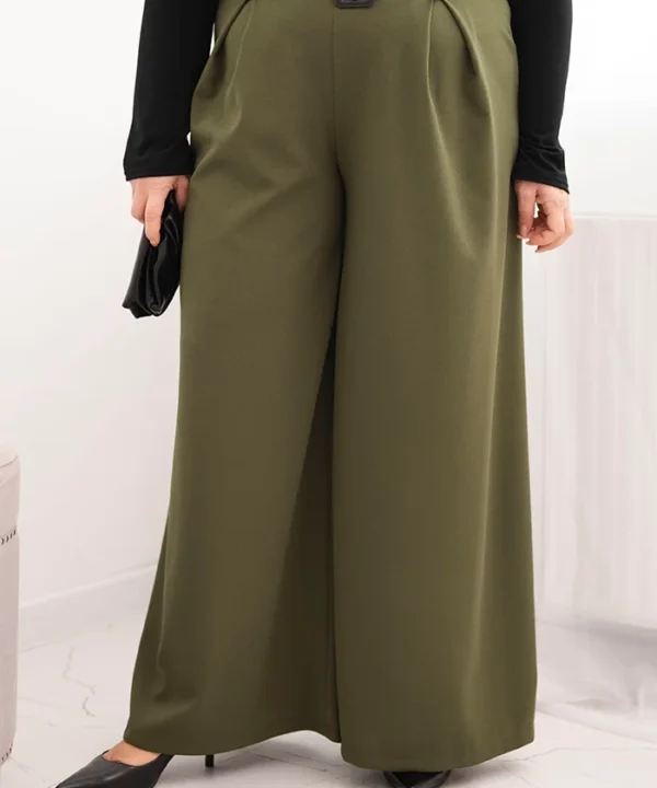 Spodnie damskie Plus Size z szeroką nogawką i paskiem khaki