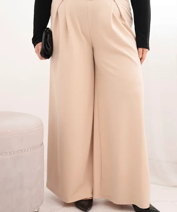 Spodnie damskie Plus Size z szeroką nogawką i paskiem beżowe