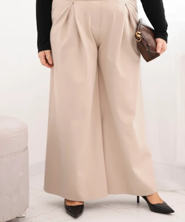 Spodnie damskie Plus Size z szerokimi nogawkami i plisowaniem beżowe