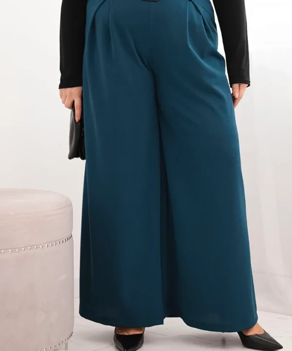 Spodnie damskie Plus Size z szeroką nogawką i paskiem morskie