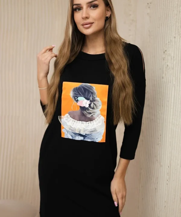 Sukienka z grafiką 3D, koronka czarna