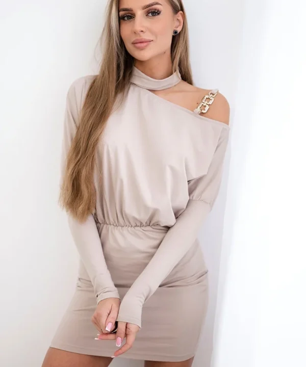• × Sukienka z ozdobą na ramieniu beżowa 1 × 87,41