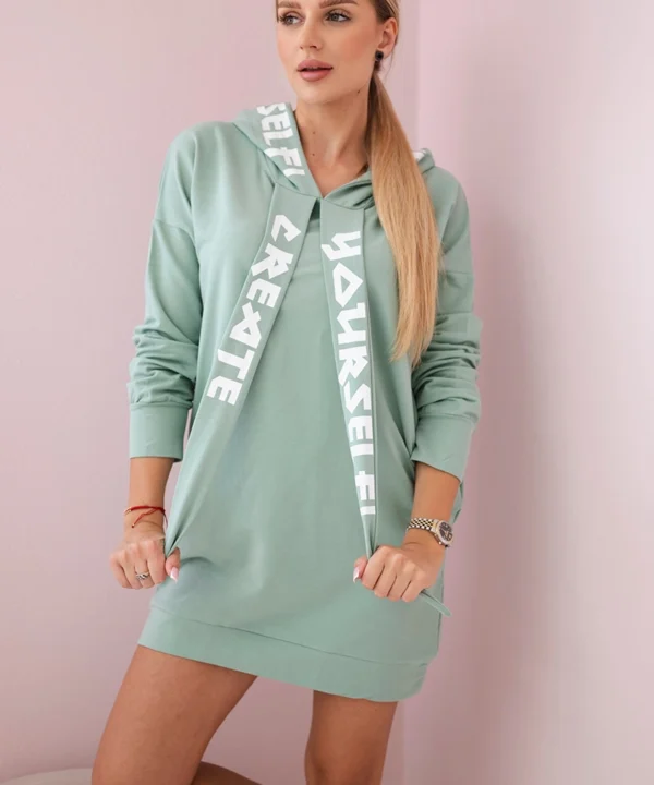 Sukienka z kapturem Oversize ciemno miętowa