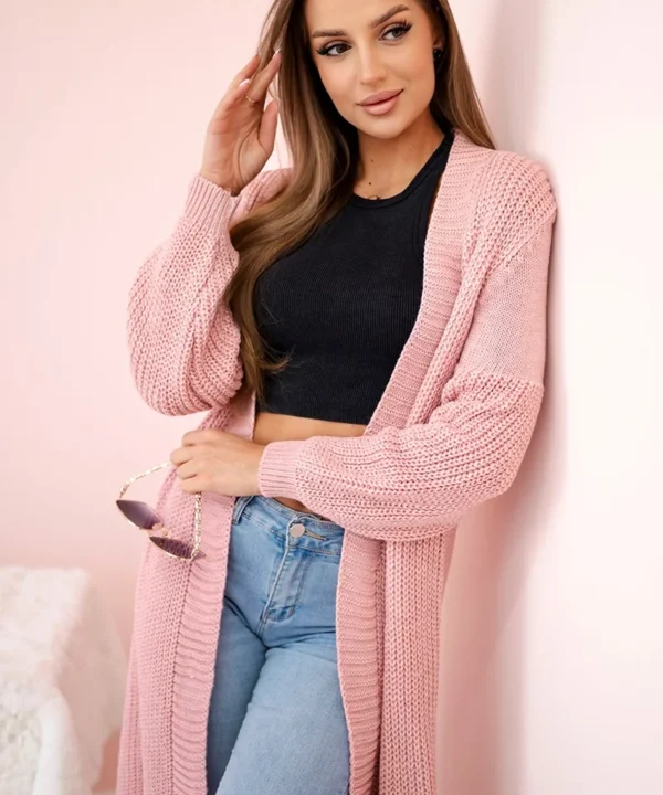 Sweter długi kardigan pudrowy róż
