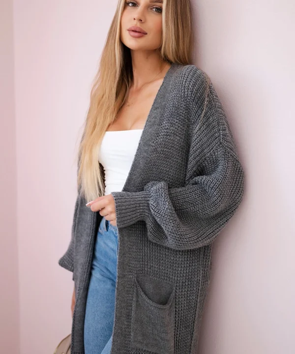 Sweter długi kardigan ciemny szary