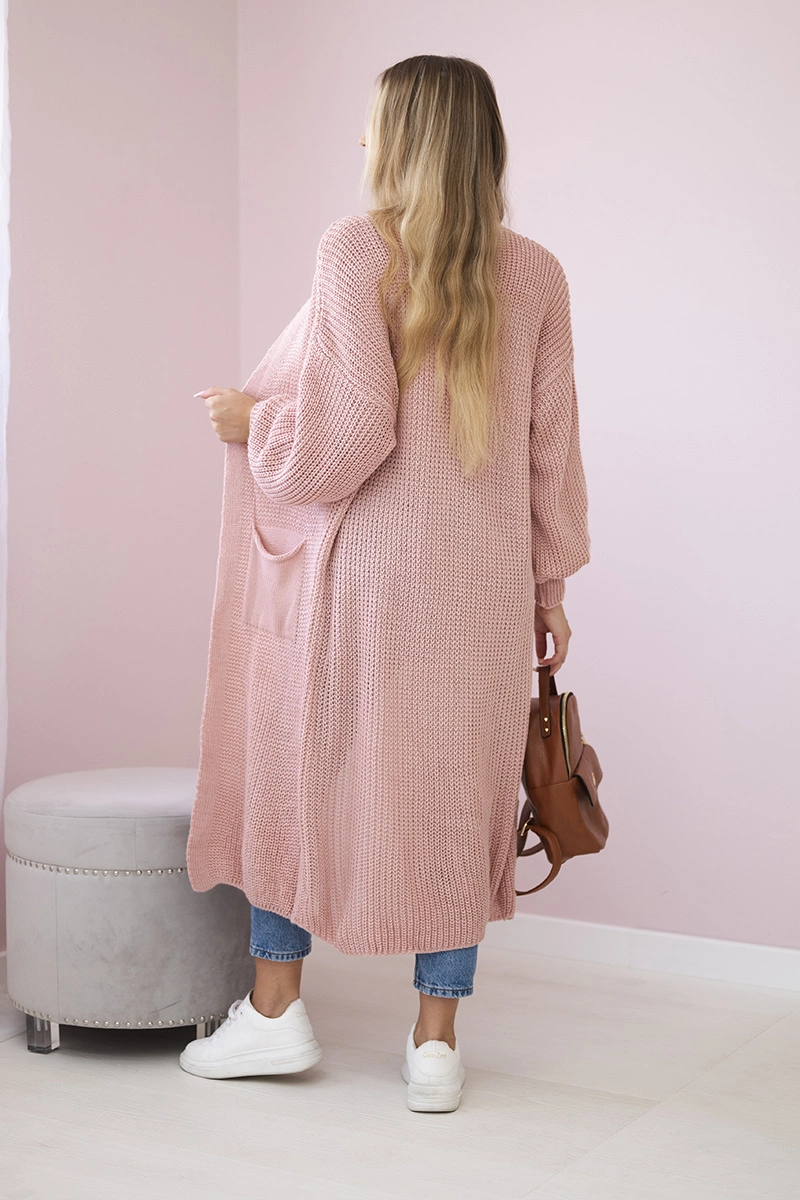 Sweter długi kardigan pudrowy róż