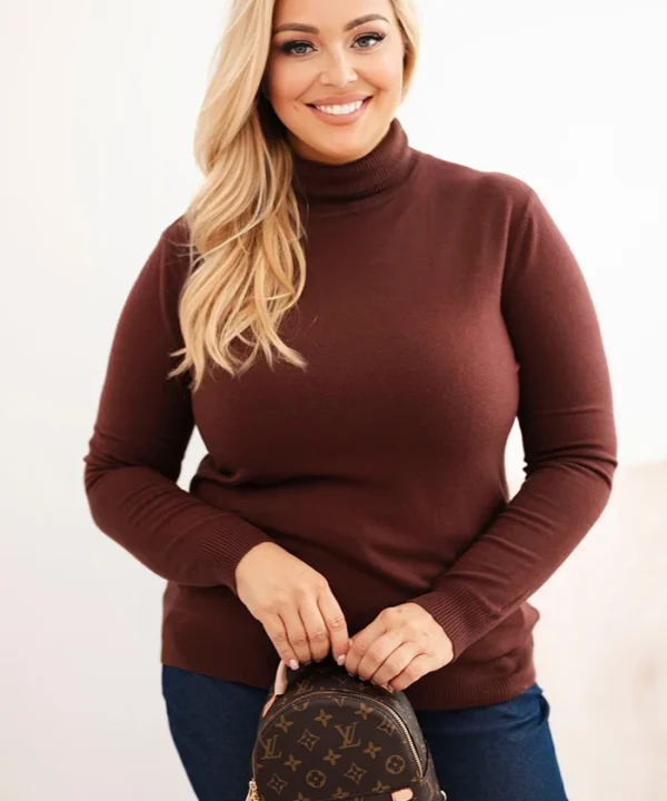 Sweter damski Plus Size z wiskozy o klasycznym kroju brązowy