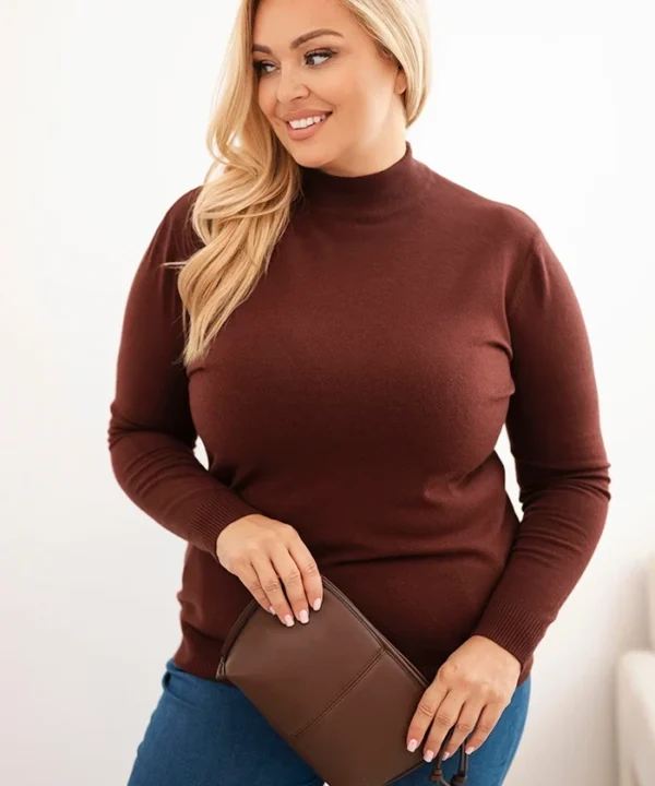 Sweter damski Plus Size z wiskozy z golfem brązowy
