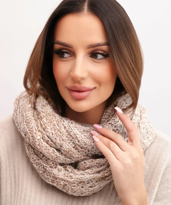 Komin damski wełniany melanżowy gruby otulacz na zimę KN24 beżowy