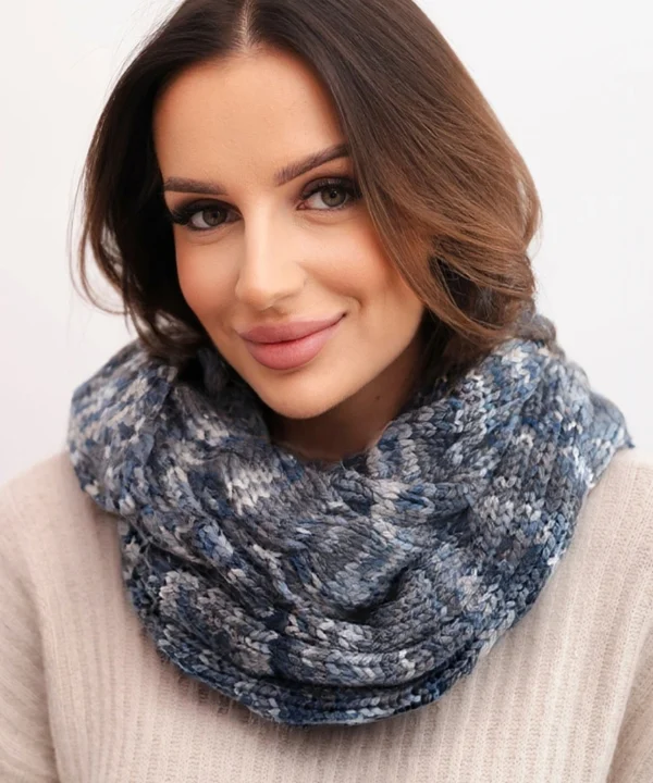 Komin damski wełniany melanżowy gruby otulacz na zimę KN24 jeansowy+grafitowy